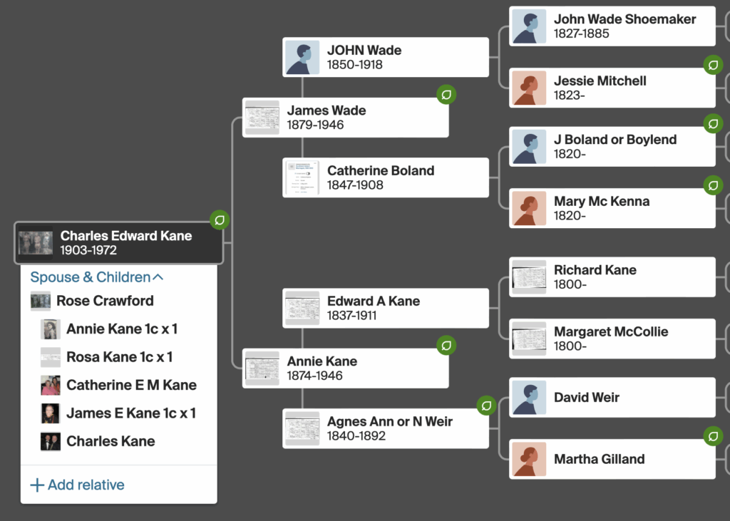 The Kane family were from the area of Monahan in Ireland. They are also connected to our Morrison and Crawford Clan through another branch. Rosa Crawford who is my maternal grandmother’s sister married Charles Edward Kane whose mother was David’s Kane’s sister