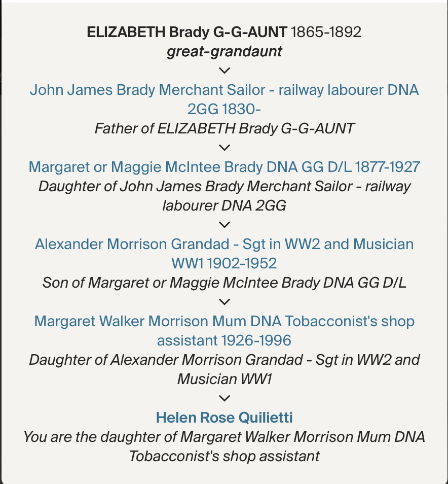 Elizabeth Brady was my Great Grand Aunt . Her sister Margaret Brady married my Great Grandfather Angus Morrison. This is our connection to this branch of the Brady family from Monaghan in Ireland.